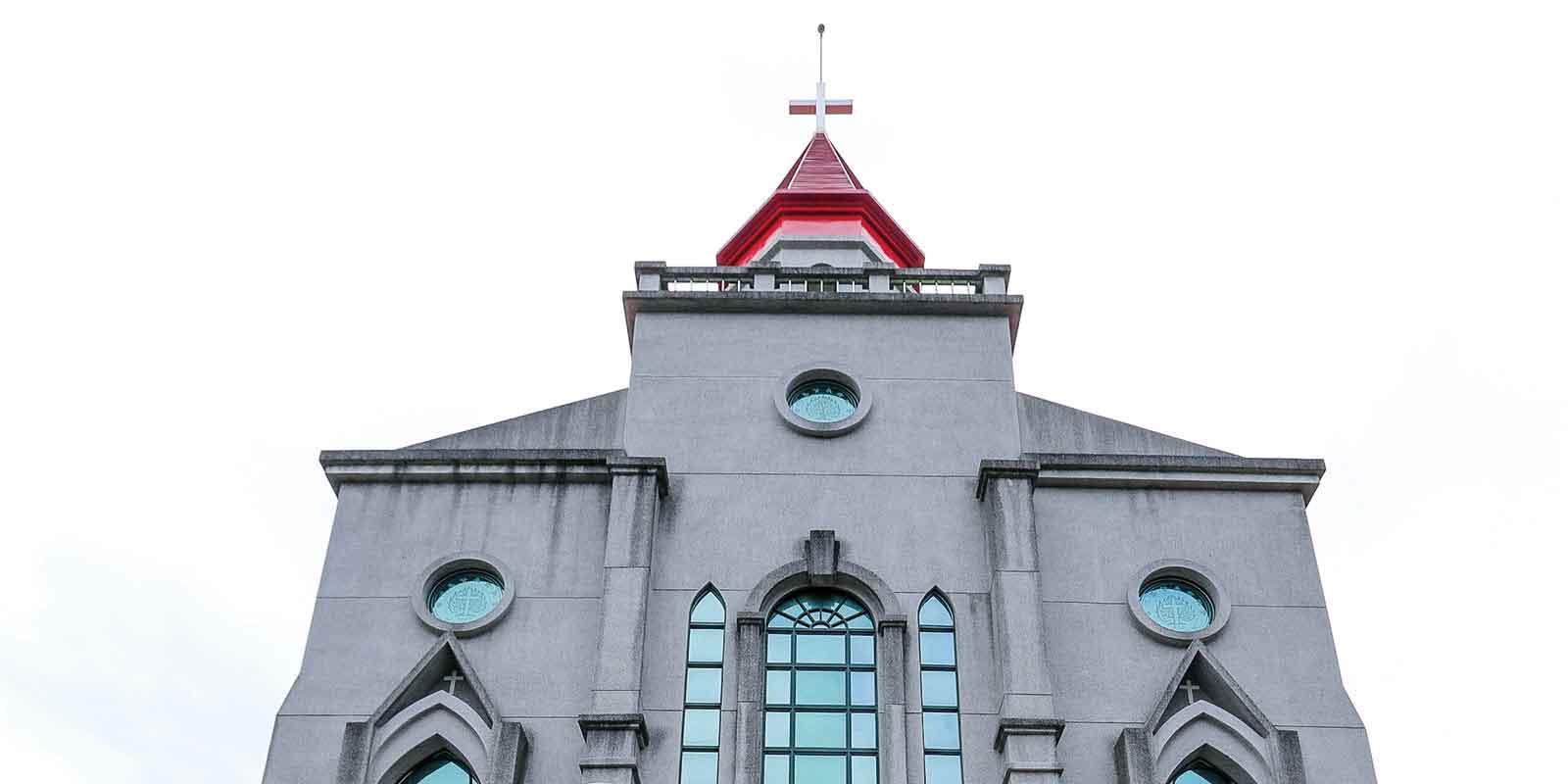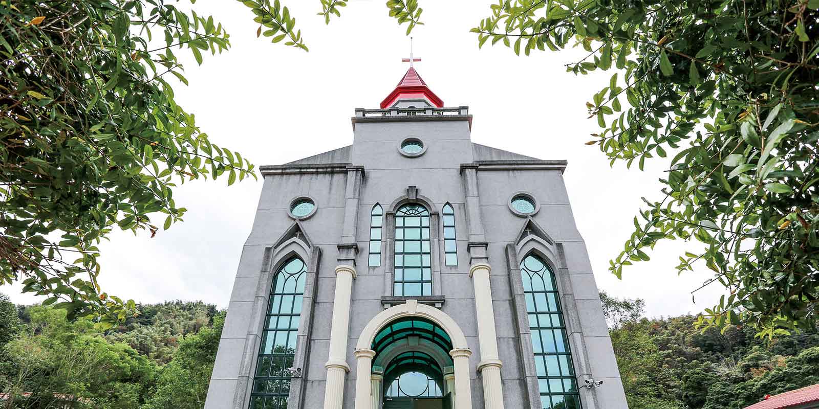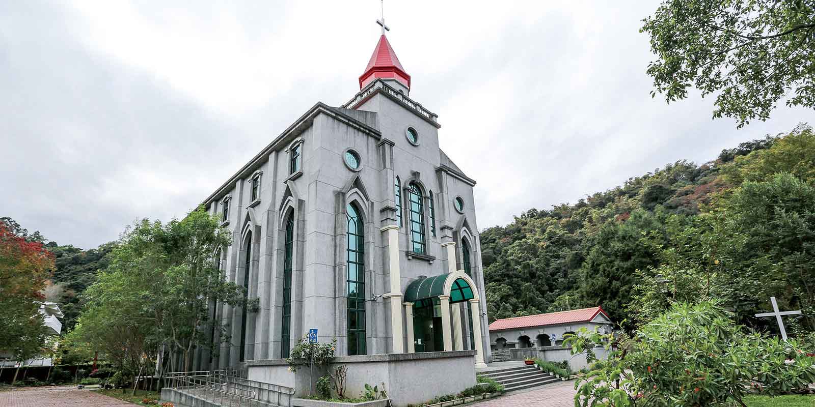 十字園納骨塔為毆式尖脊頂建築,落地型巴洛克式窗簷,一樓公感恩追思禮拜等多用途使用,另於3樓設園史資料室